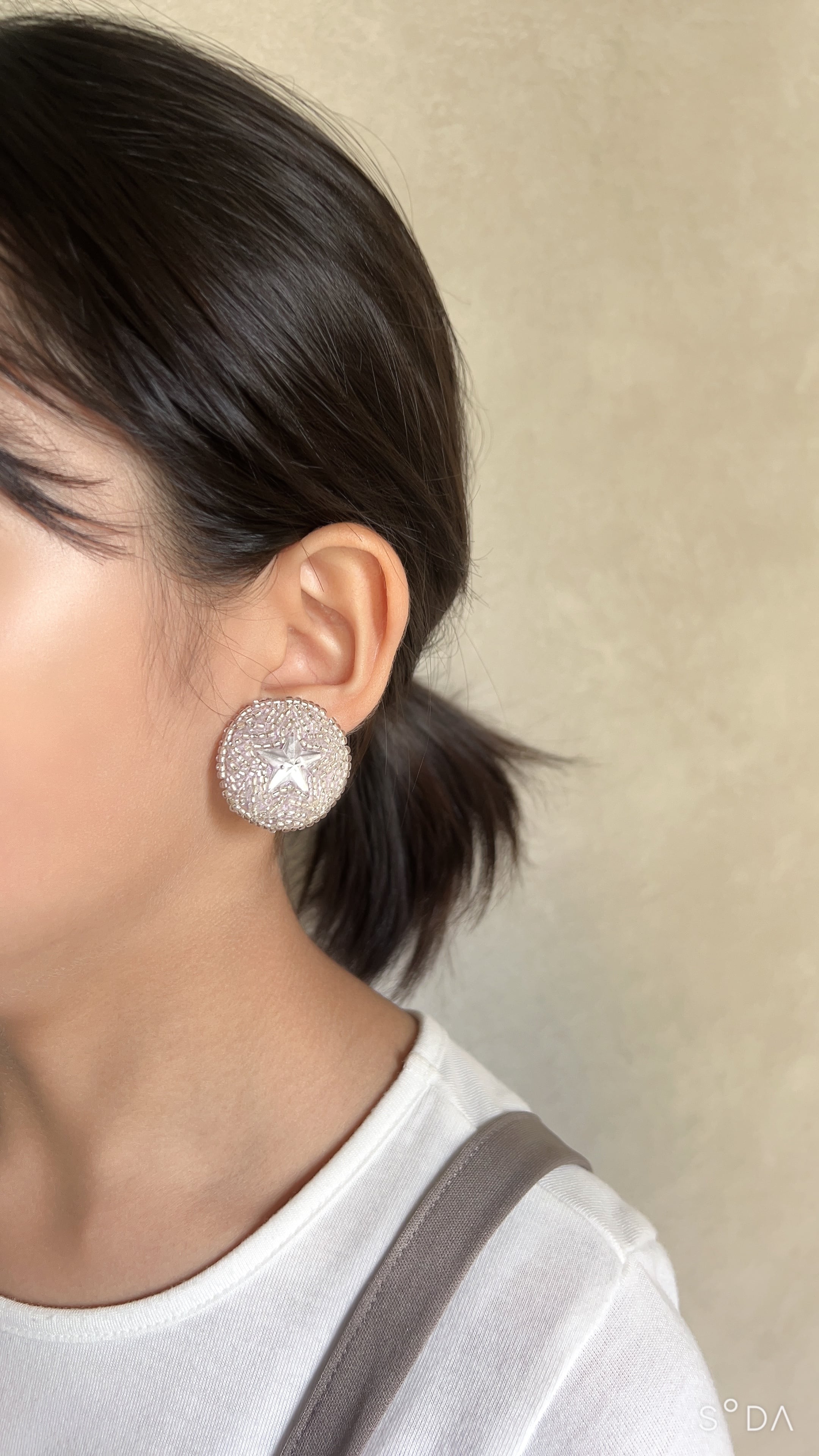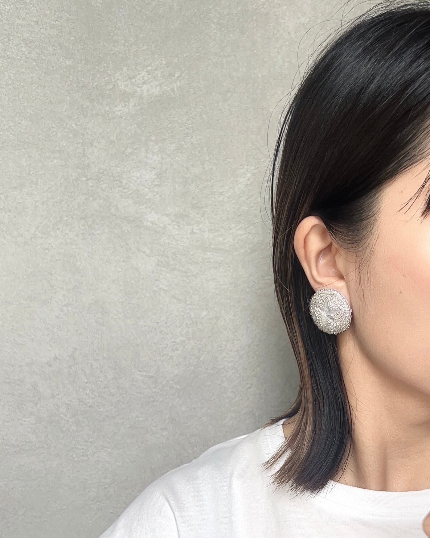 星のビーズボタンのイヤーアクセサリーです