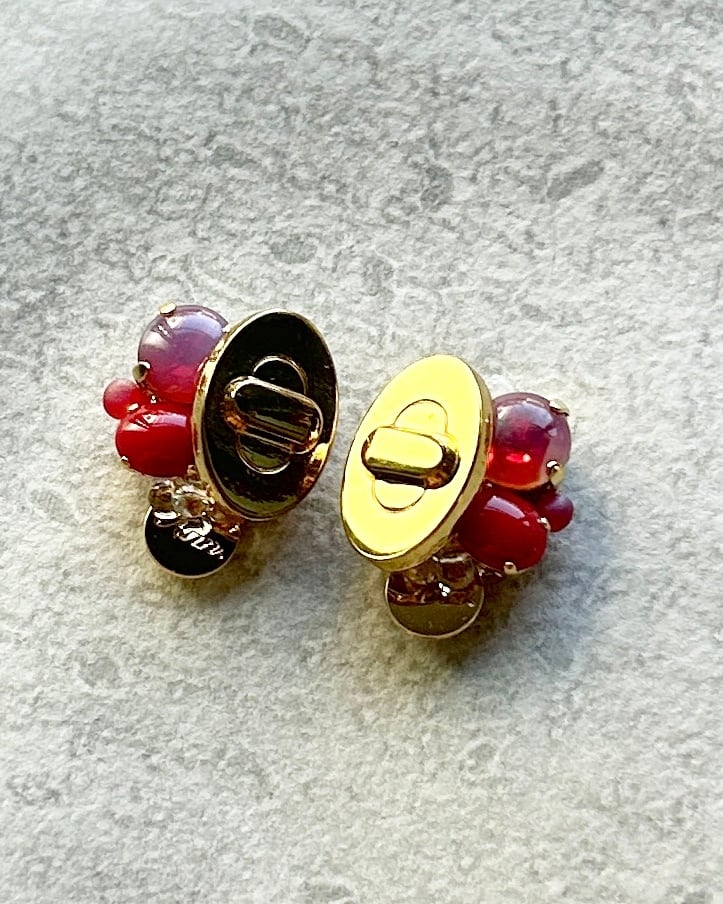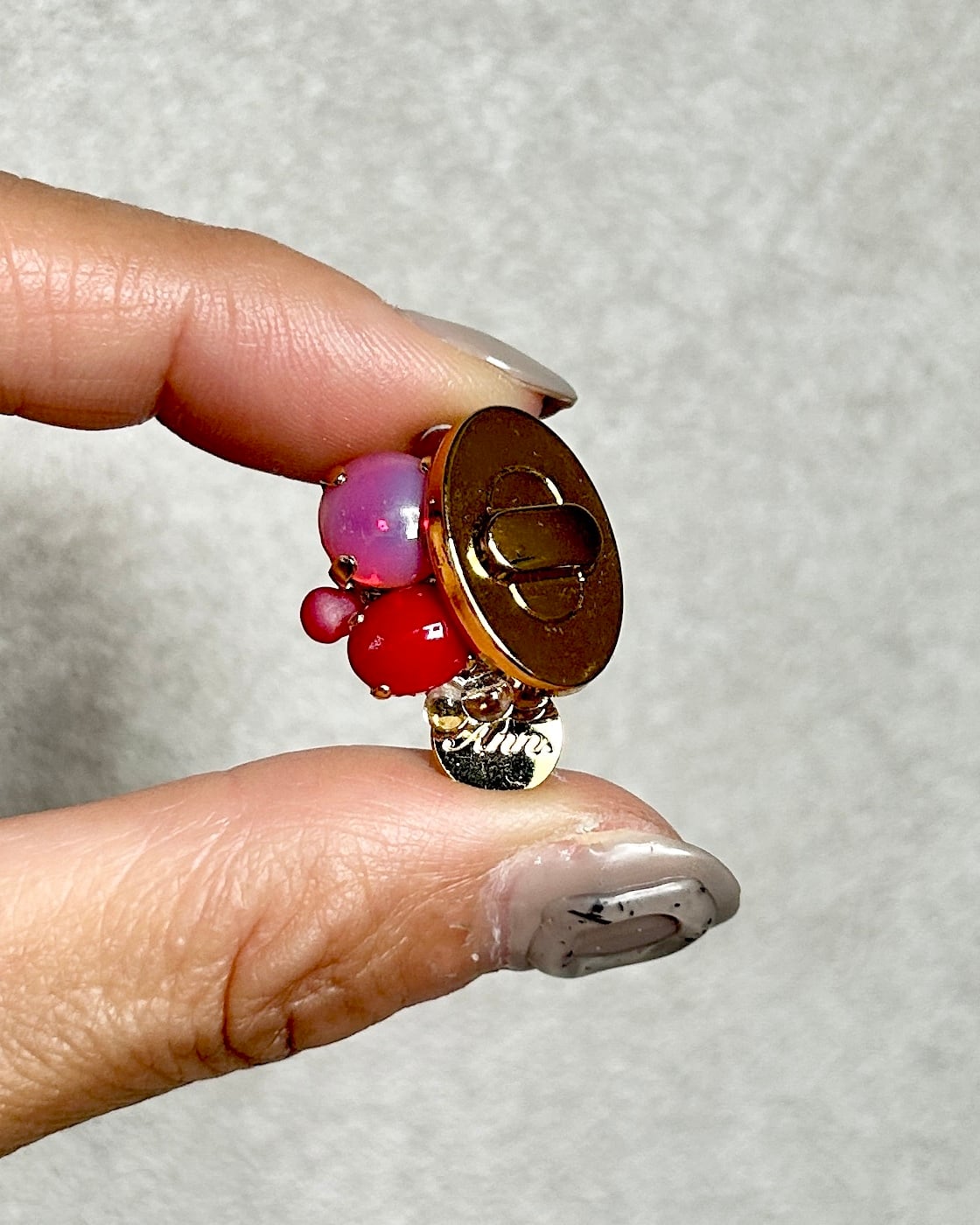ゴールドボタンに合わせたのは西ドイツヴィンテージ のデザインストーン、真っ赤なストーンはジャパンヴィンテージ