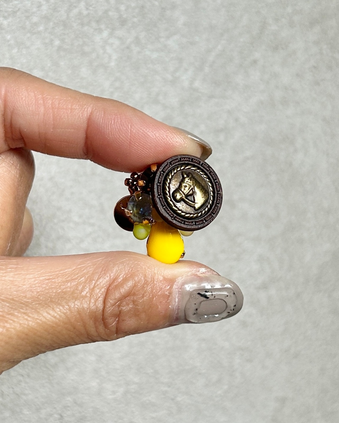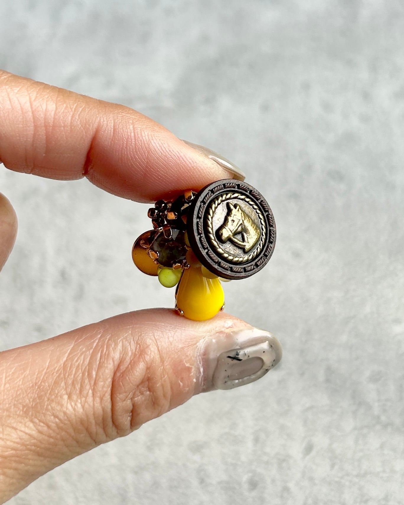 ビビットなイエローストーンがめちゃくちゃかわいい馬のボタンの耳飾りです