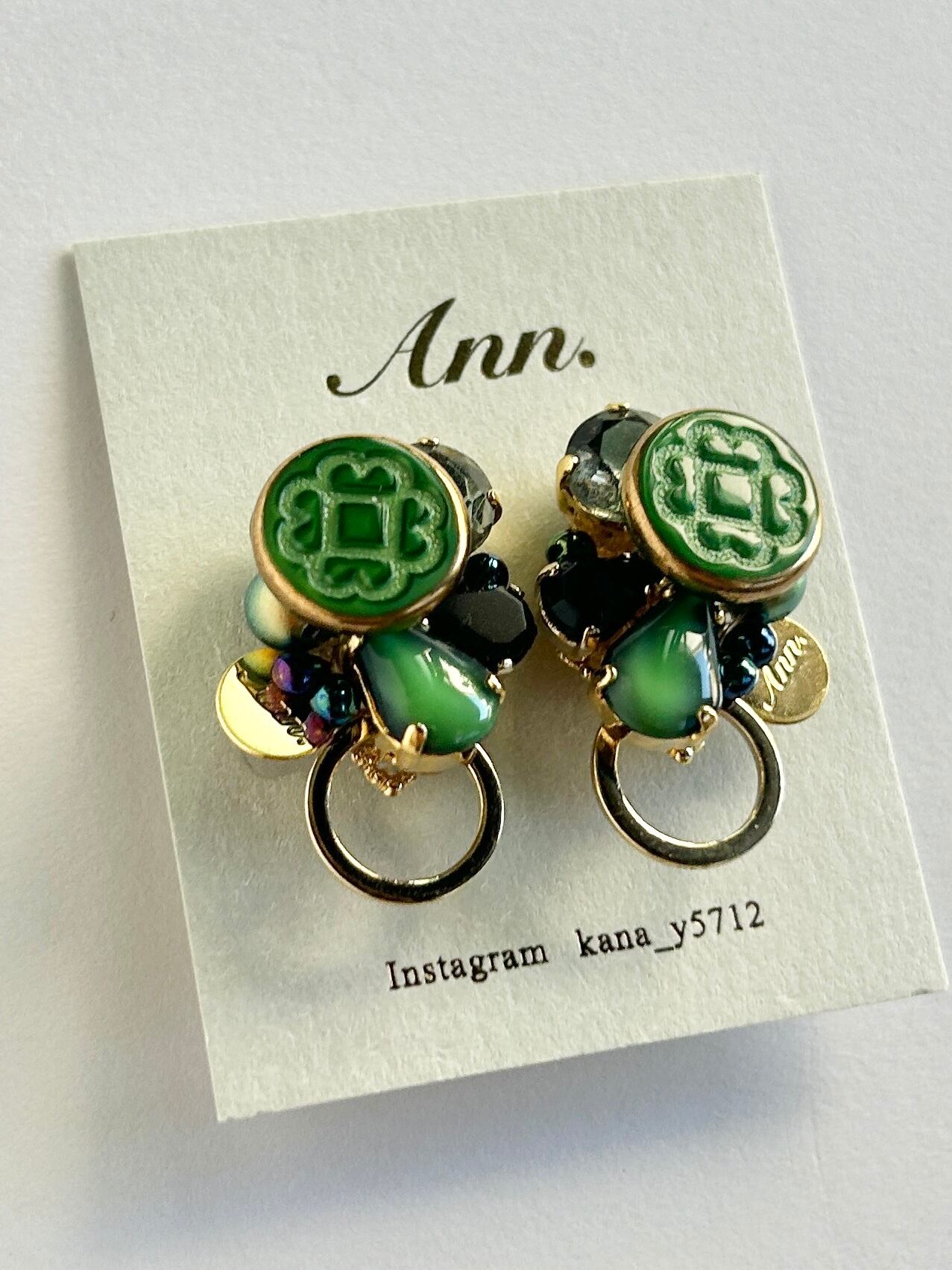秋らしいグリーンとブラックの耳飾り