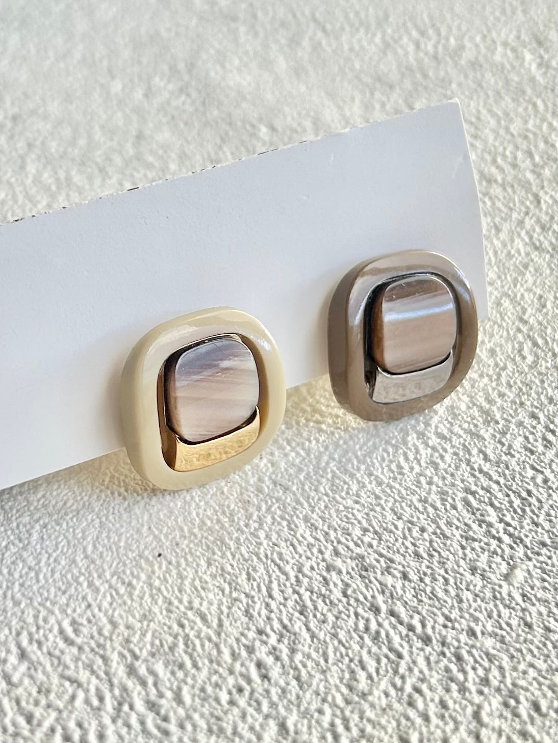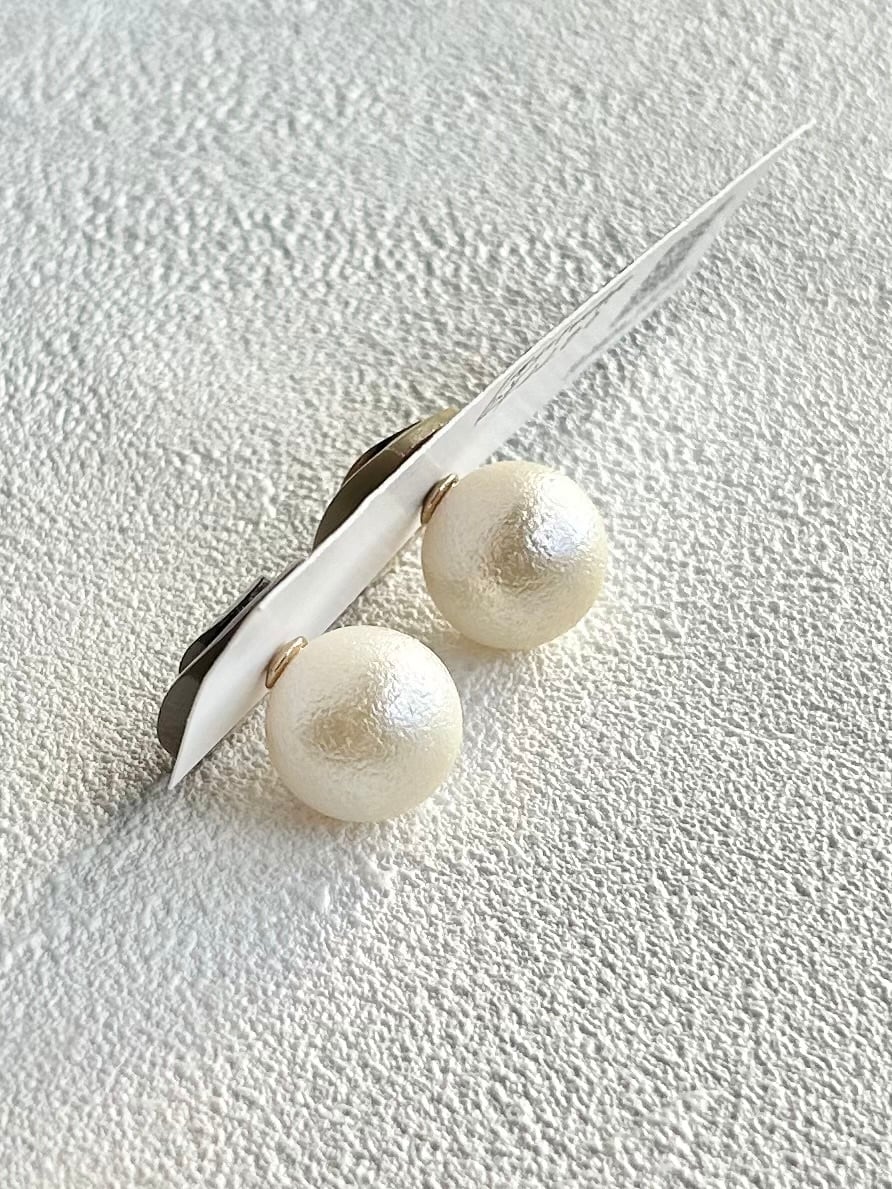 左右カラーの違うボタンピアスにコットンパール風のキャッチを合わせました。
